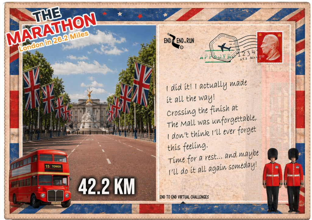 You have reached the finish at The Mall, just outside Buckingham Palace.