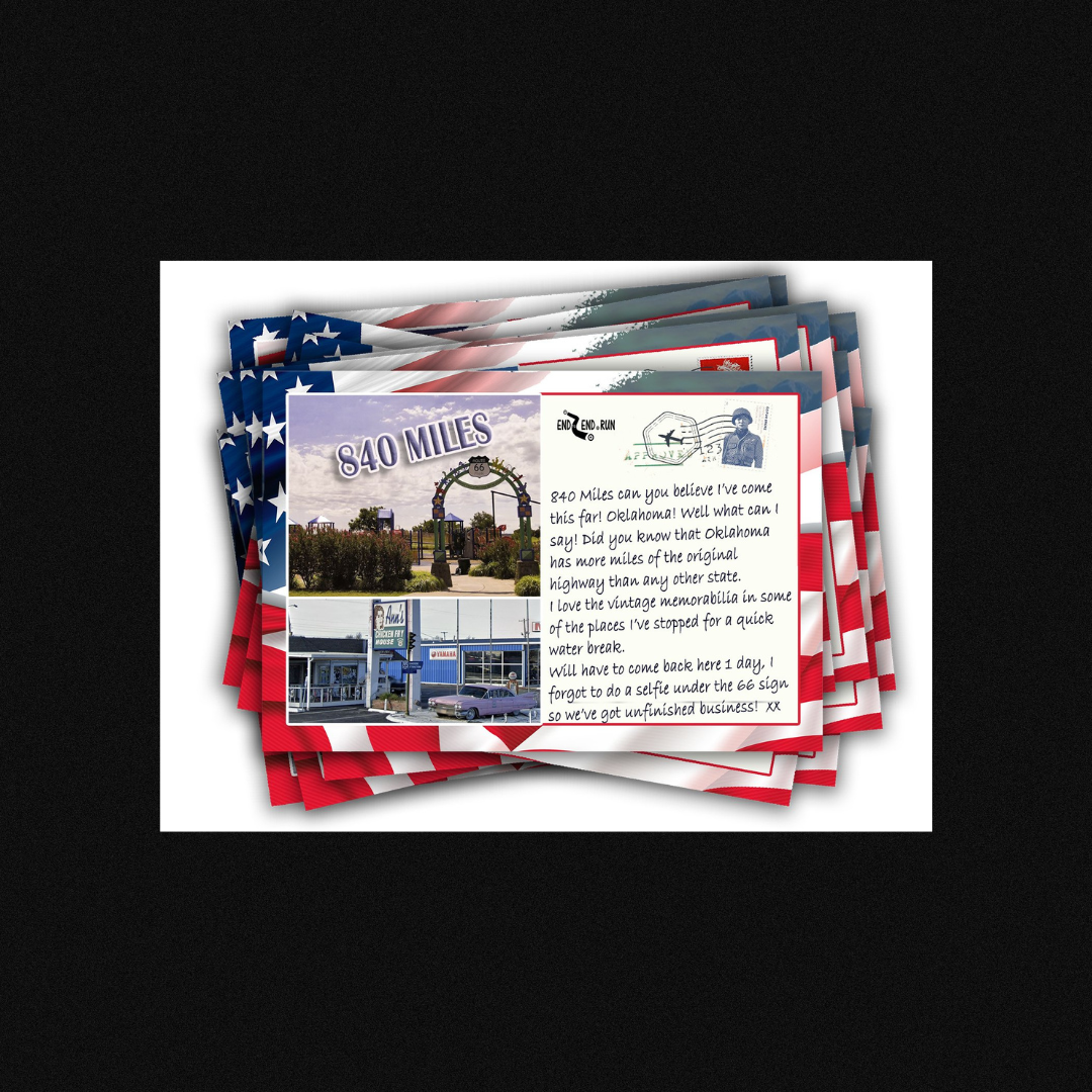 Last night I received my ninth postcard from End to End after recording 840 miles of my trip along Route 66. I have copied the